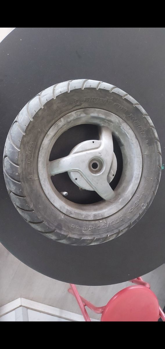 Rueda delantera de moto marca Dunlop. - Modelo: R888 - Medida: 100/90-10 - Tipo: Tubeless