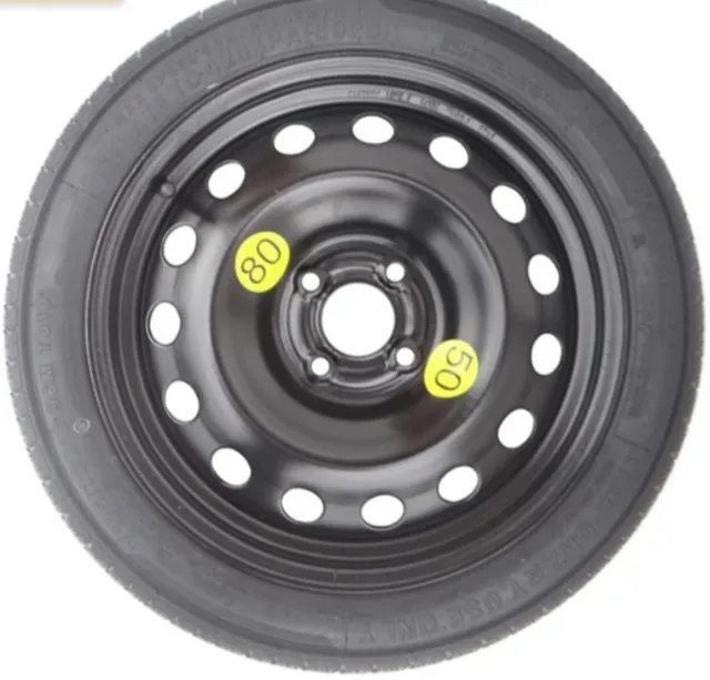 Rueda de repuesto tipo galleta con 4 agujeros para los tornillos. - Diseño compacto para fácil almacenamiento. - Ideal como rueda de emergencia.