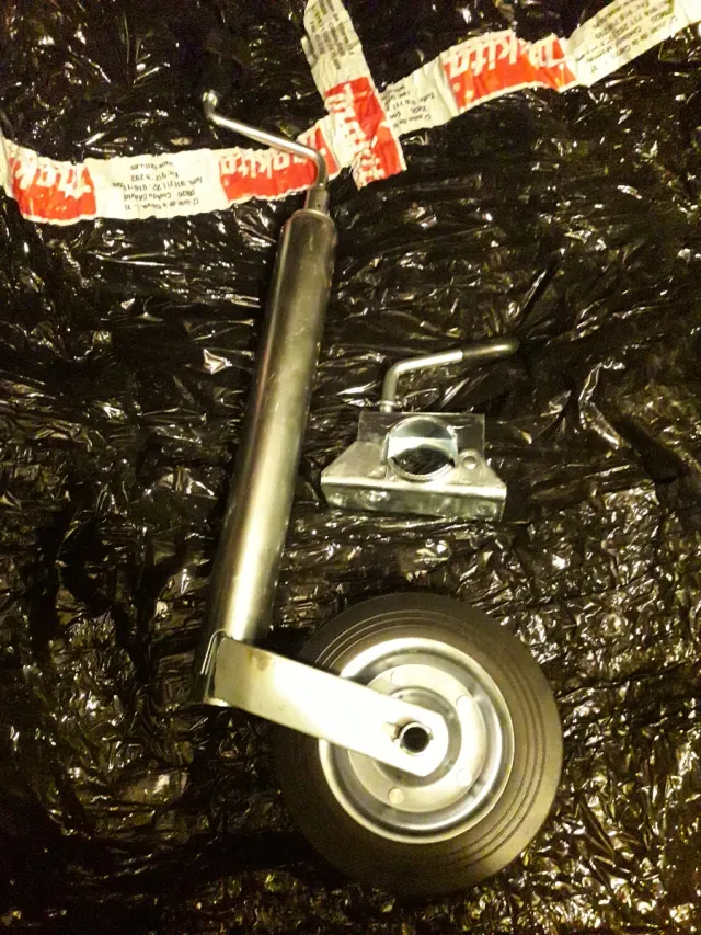 Rueda jockey de 48mm para remolques. Incluye soporte. - Material: Metal y goma. - Diámetro del tubo: 48mm.