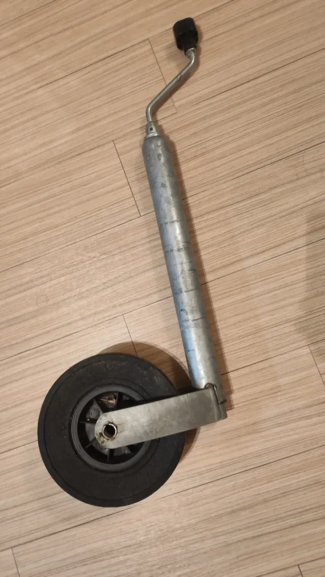 Rueda jockey para caravana o remolque. - Material: Metal y goma. - Incluye manivela para subir y bajar.