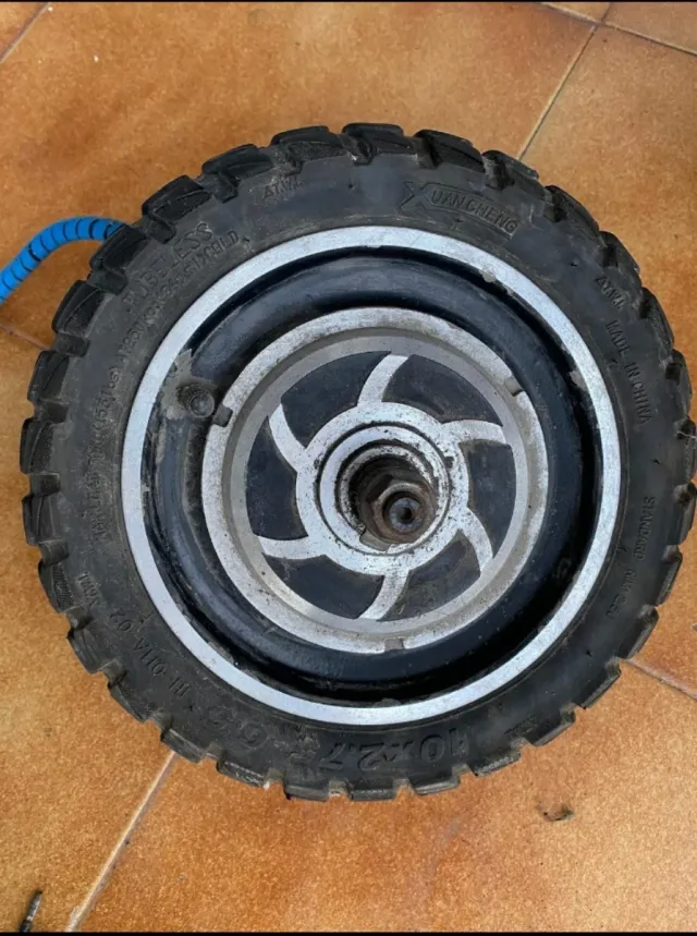 Detalles del productoRueda con motor para patinete eléctrico Smartgyro Speedway. Llanta de aluminio y neumático.