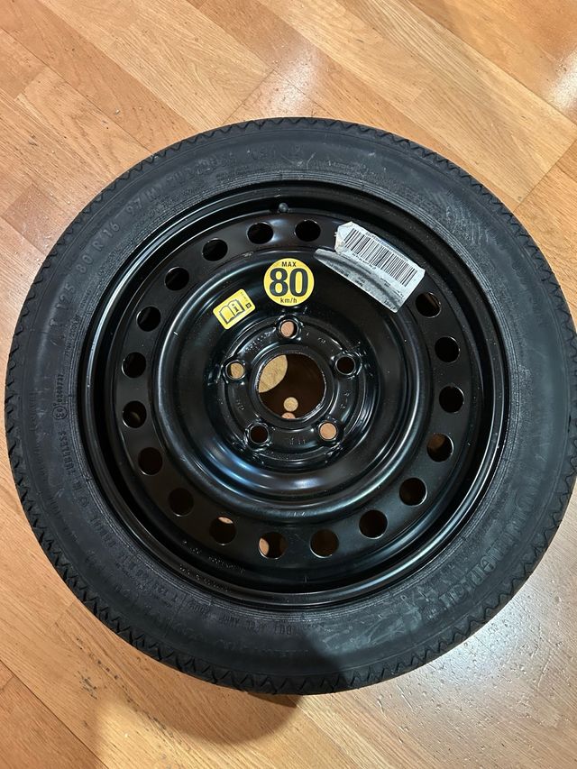 Rueda de repuesto para Opel Insignia. - Medida: 125/80 R16. - Velocidad máxima: 80 km/h. - Nueva - Se envía herramienta, gato, llave, gancho....