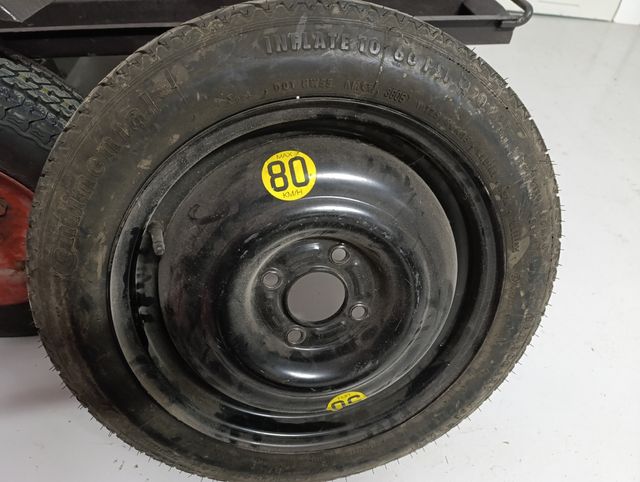 Detalles del productoRueda repuesto tipo galleta de 4 agujeros tubeless, medidas 125/80 R15, està nueva no se ha usado nunca. Hago envios o entrego en mano zona baix Llobregat.