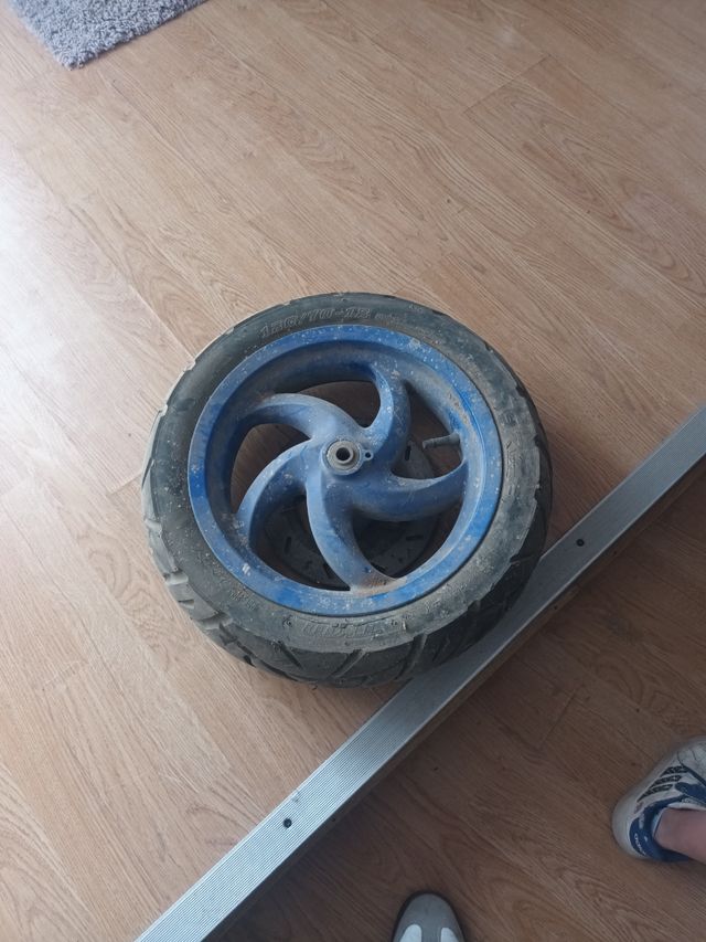 Vendo rueda para scooter en buen estado. - Llanta de 12 pulgadas. - Neumático 120/70-12. - Color azul.