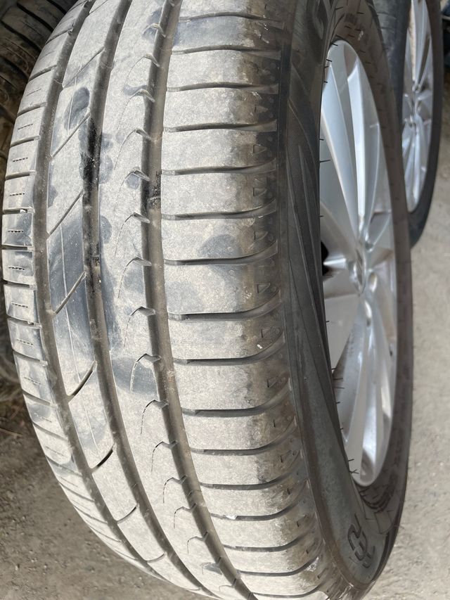 Rueda de coche marca Seat. - Neumático en buen estado. - Llanta de aleación plateada.