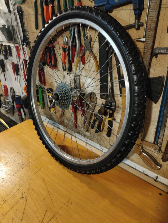 Detalles del productoRueda trasera( 26) pulgadas con componentes Shimano.buje 140.mm.7.PINIINES.13/28/DIENTES.CIERRE RÁPIDO!CENTRADA en perfecto estado.(HAGO ENVÍOS!)