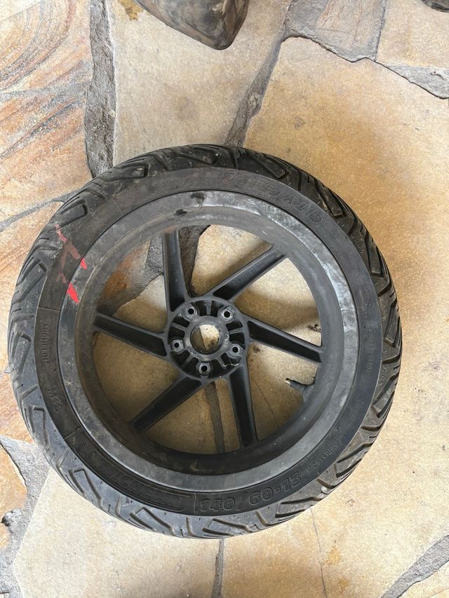 Rueda trasera para Gilera Runner 49cc. Llanta de aleación negra. - Medida: 140/60-13. - Marca de neumático: Michelin City Grip 2.