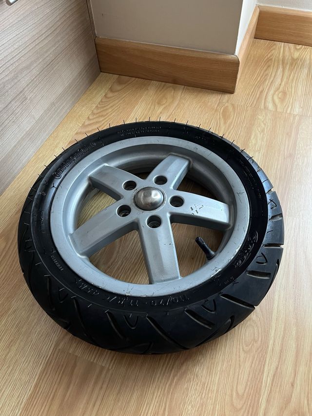 Detalles del productoRueda completa, neumático con llanta para Vespa LX 50 y 125. Lista para montar.