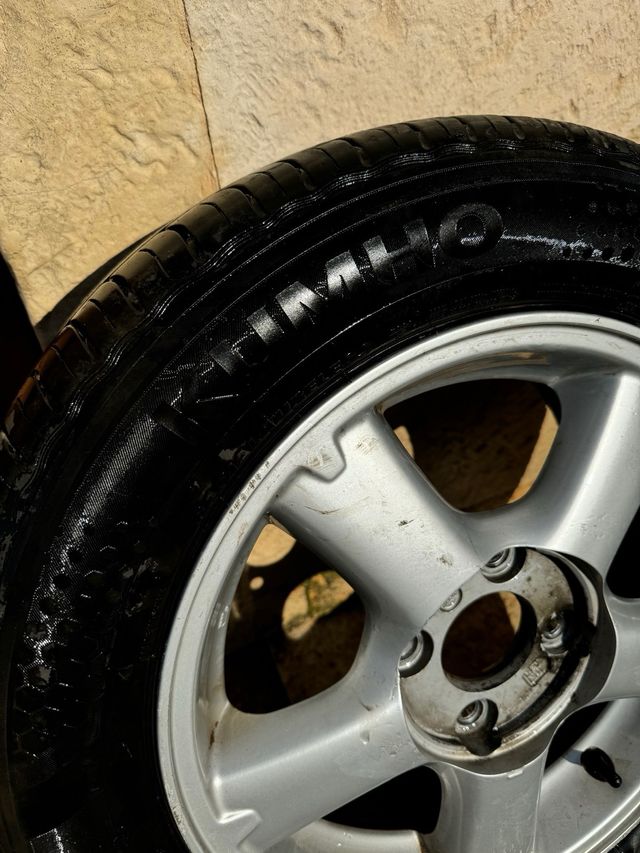 Detalles del productoSe venden 4 ruedas y llantas quitadas de un coche accidentado. 2 de estas, las delanteras (Ecowing), tienen tan solo 2 meses de uso, menos de 1500km. Las traseras con unos 10000km. Todas se quitaron del coche hace 2 meses. Para mas fotos o info 📨