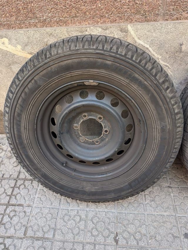 2 neumáticos Michelin y 2 neumáticos Minerva a un 50% de uso junto con las llantas. Solo neumáticos o solo llantas negociable.