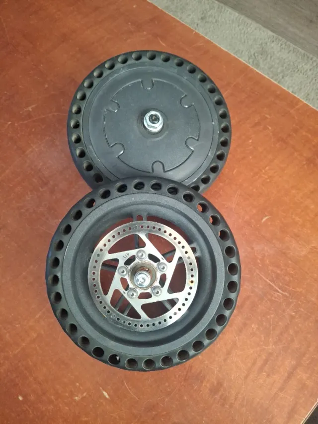 Detalles del productoJuego de dos ruedas sólidas para patinete eléctrico, diseñadas para evitar pinchazos.
