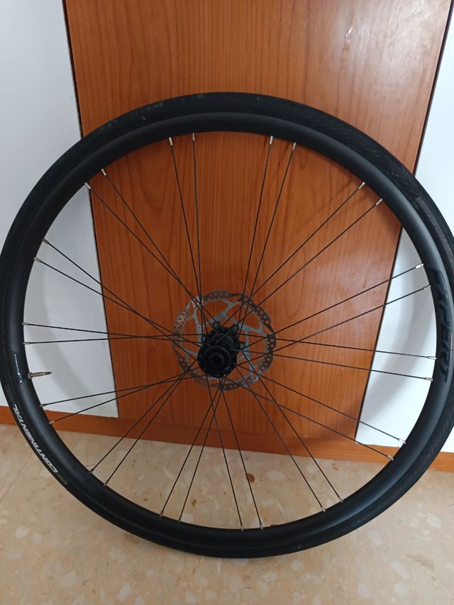 Vendo un par de ruedas para bicicleta de carretera, de disco. Están en buen estado. - Tipo: Carretera, disco - Incluye: 2 ruedas