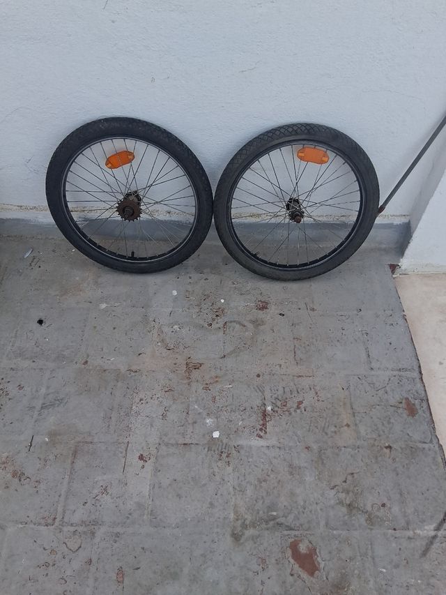 Juego de dos ruedas completas para bicicleta BMX. Listas para montar. - Incluye llantas, radios y bujes. - Cada rueda tiene un reflector naranja.