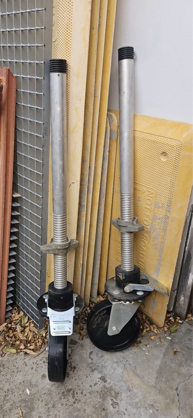 Dos ruedas para andamio, listas para usar. - Ruedas de goma negra. - Estructura metálica.
