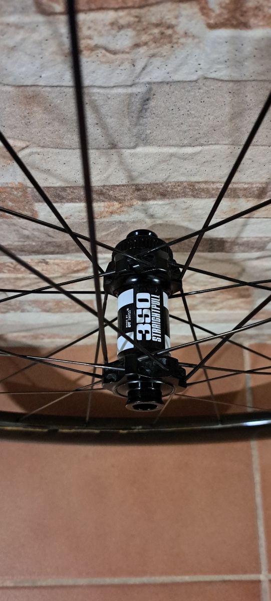 Aros rd45sl, bujes Dt Swiss 350 SP ratchet 36 dientes, radios Sapim CX Ray, interior 21mm y exterior de 28mm, para discos centerlock, ejes pasantes 12x100 y 12x142, y núcleo shimano.