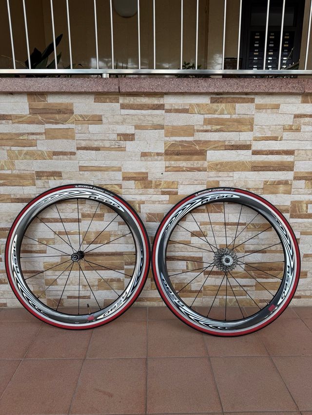 Detalles del productoJuego de ruedas de bicicleta de carretera con perfil aerodinámico.