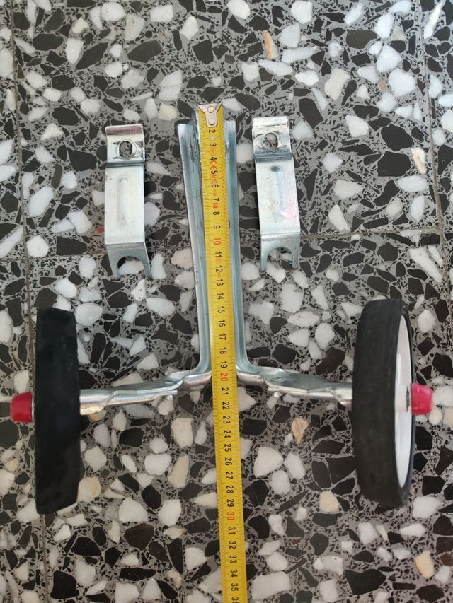 Par de ruedas de entrenamiento para bicicleta, ideales para aprender a montar. - Fabricadas en metal y goma. - Incluyen soportes de montaje.