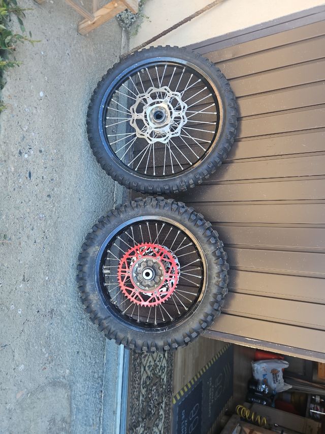 Detalles del productoJuego de ruedas completas para moto de enduro, delantera y trasera.