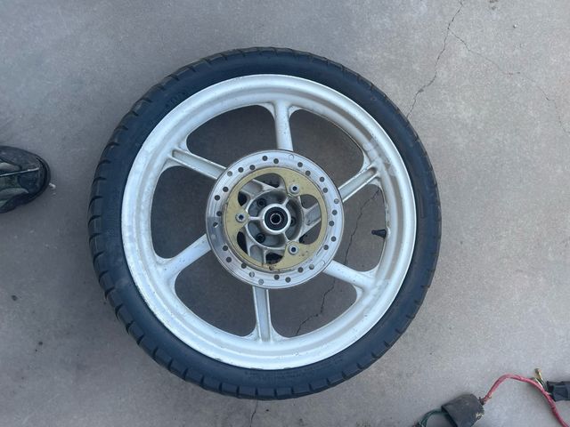 Detalles del productoRueda delantera y trasera de Honda NS1 75cc del año 1992. Llanta de aleación blanca con disco de freno.