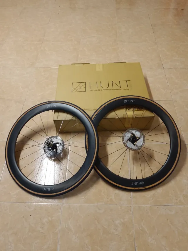 Detalles del productoVendo Juego de ruedas Hunt Carbono con perfil de 50mm núcleo Shimano muy ligeras podéis ver el peso en las fotos con tubeles Michelin pro 5 de 28 mm con líquido anti pinchazos y discos ultegra muy bien conservadas y en perfecto estado de uso doy 4 radios originales q venían en la caja y adaptador del núcleo se envían en su caja original compradas en 2023 aporto factura de compra.