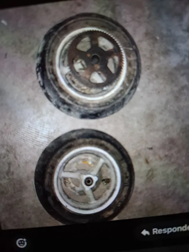 Juego de dos ruedas para minimoto. - Una rueda con llanta de aluminio y piñón. - Otra rueda con llanta de aluminio y tres radios.