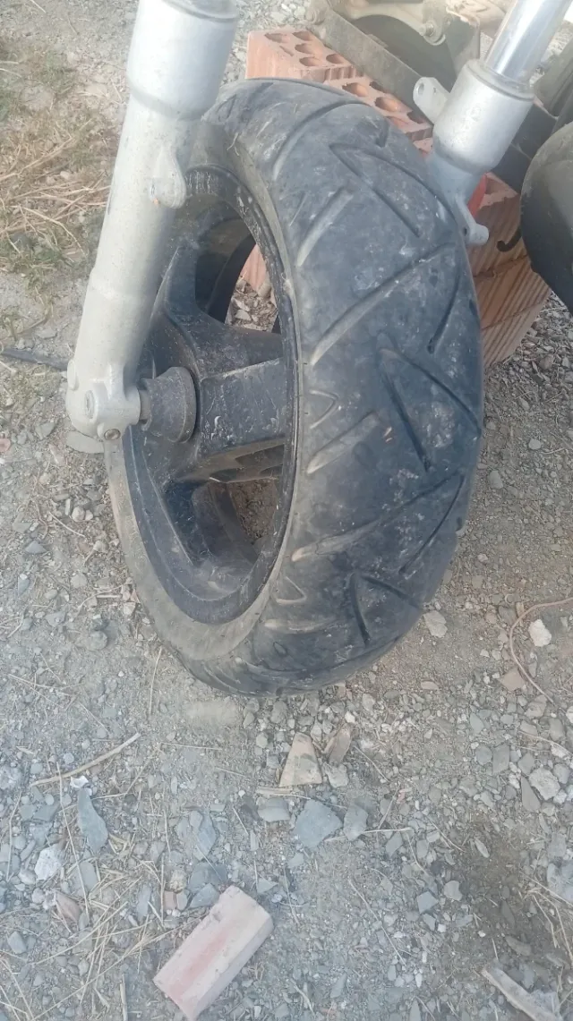 Juego de ruedas para moto de 49cc, tanto delantera como trasera. Están nuevas y listas para montar. - Incluye rueda delantera. - Incluye rueda trasera.
