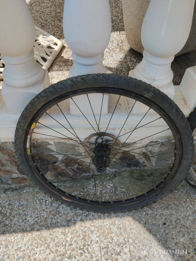 Detalles del productoSe venden dos ruedas para bicicleta de montaña de 26 pulgadas. Están en buen estado, aunque muestran señales normales de uso.