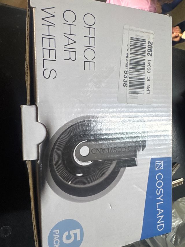 Detalles del productoSe venden 5 ruedas para silla de oficina de la marca Cosyland. Son de color gris oscuro y parecen estar en buen estado.