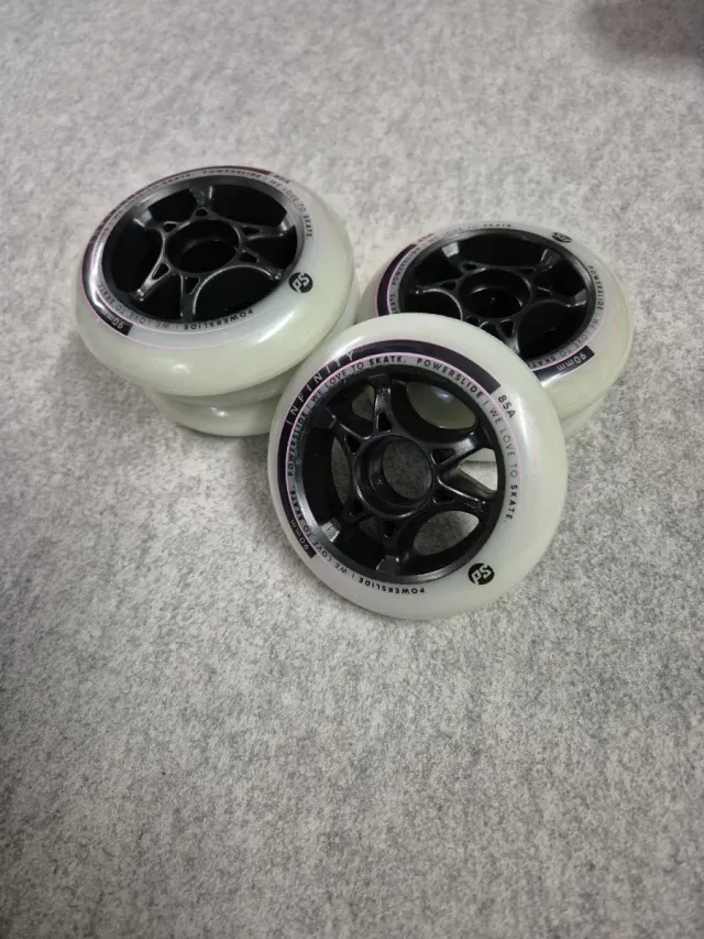 Set de cuatro ruedas de patinaje de velocidad Powerslide Infinity. - Diámetro de 90 mm. - Dureza de 85A. Sin usar