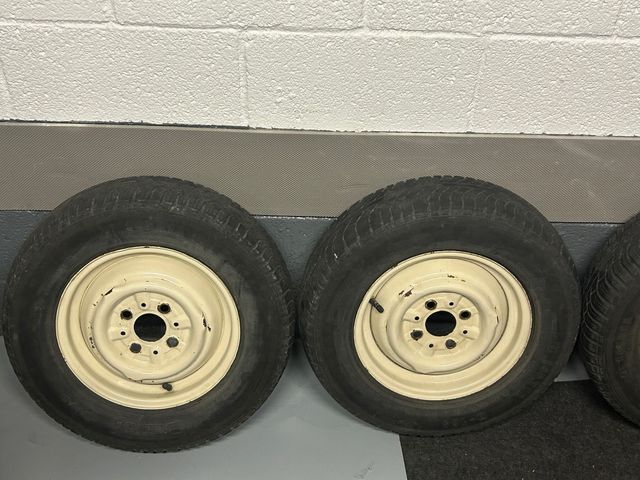 Juego de 4 llantas con neumáticos para Seat 600 E y L, también D 2a serie y L especial. Neumáticos en buen estado, más información preguntar.