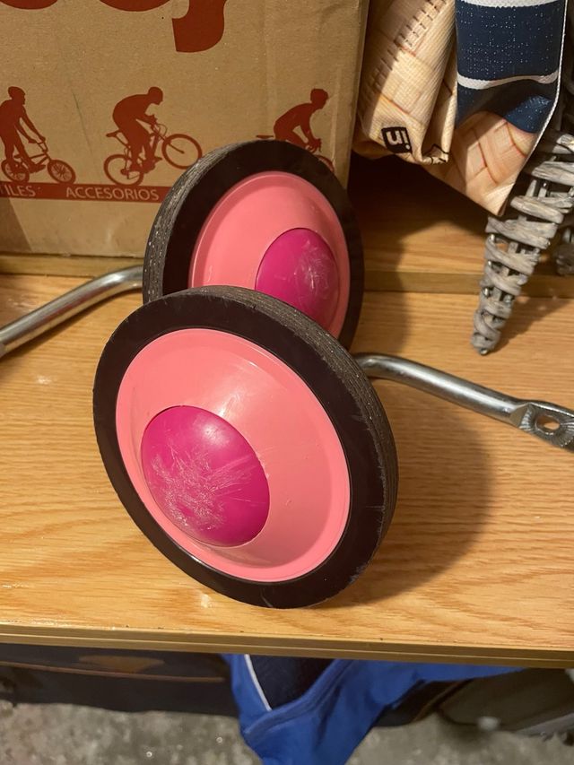 Detalles del productoPar de ruedines para bicicleta infantil, en color rosa y en buen estado.