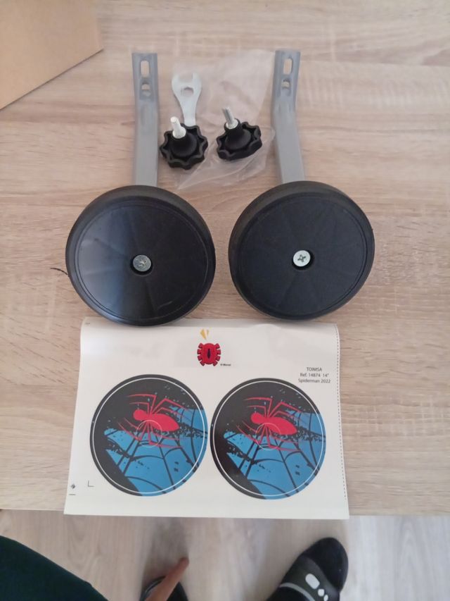 Detalles del productoSet de ruedines de aprendizaje para bicicleta infantil con diseño de Spiderman.