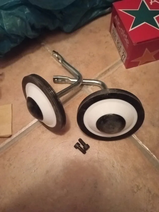 Juego de ruedines para bicicleta, ideales para aprender a montar. - Fabricados en metal y plástico. - Color blanco y negro. - Incluye tornillos de sujeción.