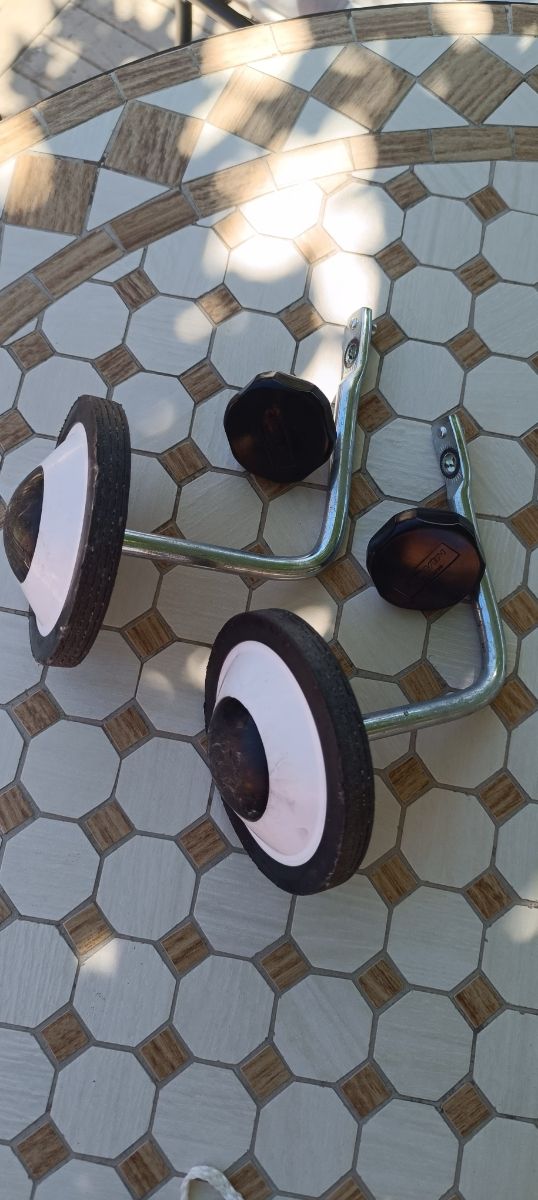 Par de ruedines para bicicleta, ideales para ayudar a los más pequeños a aprender a montar. - Ruedas de goma. - Soportes metálicos.