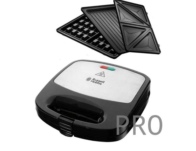 Detalles del productoPRECIO ONLINE : 53.99€ ESTADO : COMO NUEVO DEFECTO : TIENE PEQUEÑOS SIGNOS DE USO LOCALIZACIÓN V- T. P2 E.2 F.3 COD : 63088 Russell Hobbs Sandwicheras [3 en 1: gofrera, tostadora, grill] Fiesta (750 W, placas antiadherente aptas para lavavajillas, accesorios disponibles (no incluidos): cake pop, donut, churros) Versatilidad 3 en 1 cualquier antojo: desde tostadas doradas hasta gofres crujientes y delicias a la parrilla, esta sandwichera 3 en 1 tiene placas intercambiables para satisfacer todos los gustos, en cualquier momento