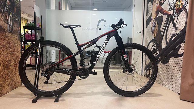 Cuadro: S-Works FACT 11m, carbono w/unica S-Works capa, XC Geometría, 12x142mm espacio delantero recorrido 100mm, SWAT™ para herramienta incluído.