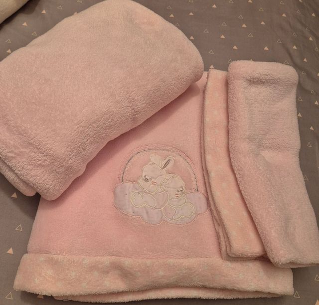 Detalles del productoRosa muy clarito y la sénefa con lunaritos blancos , muuuy suave, calentita 🥰 y limpia
