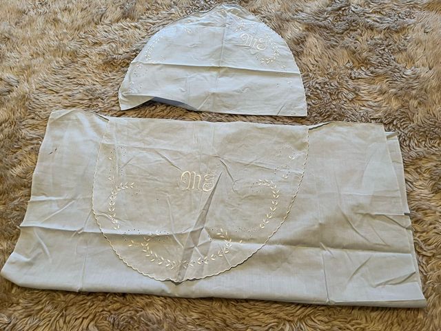 Sábana y funda de almohada para cuan, azules con bordado blanco, iniciales MJ