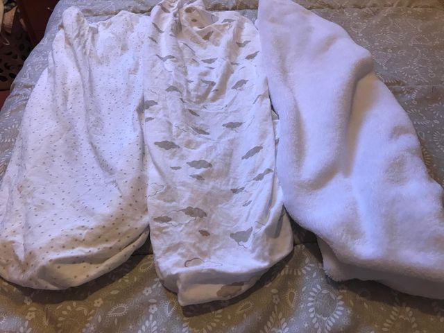 3 sabanas bajeras para capazo o moises, 2 en algodon estapadas y 1 en polar. Las vendo separas o todas juntas. poco uso.