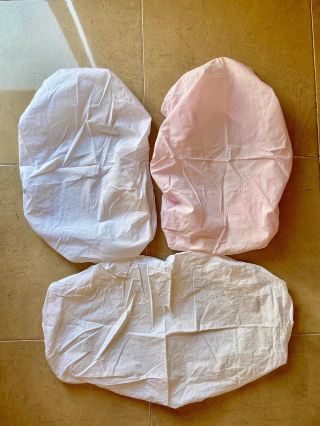 Lote sábanas de carrito para bebé: dos blancas y uno rosa