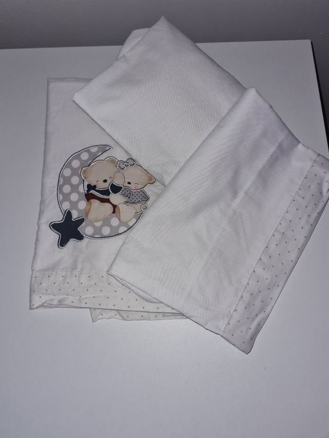 Detalles del productoConjunto de sábanas para minicuna, ideal para bebés. El diseño es precioso, con ositos en la luna. Incluye tres piezas: una sábana bajera, una sábana encimera y una funda de almohada. Son suaves y delicadas, perfectas para un descanso confortable. - Sábanas para minicuna