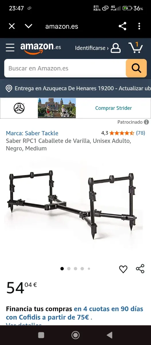 Caballete de varilla marca Saber Tackle, modelo RPC1. Color negro y talla Medium. - Diseño unisex adulto. - Material de varilla.