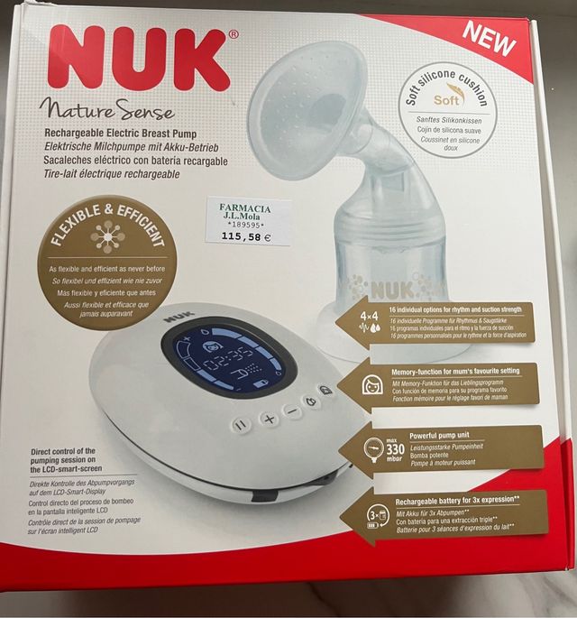 Detalles del productoSacaleches eléctrico NUK Nature Sense, diseñado para una extracción cómoda y eficiente. Con todas las piezas.