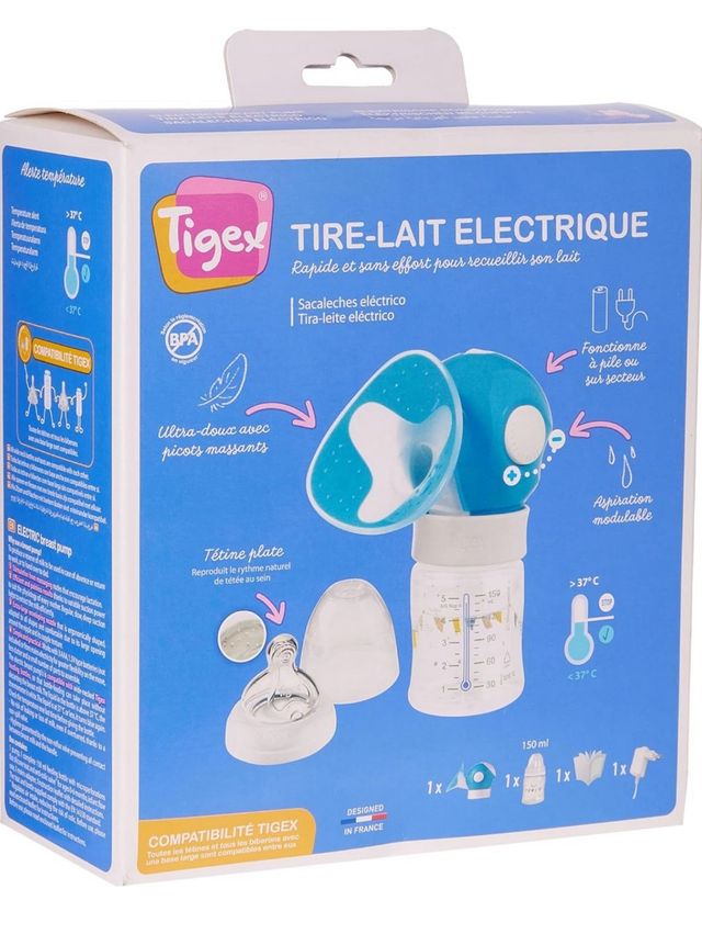 Detalles del productoVendo sacaleches eléctrico Tigéx, A ESTRENAR ,Es azul y blanco, y parece muy cómodo de usar.