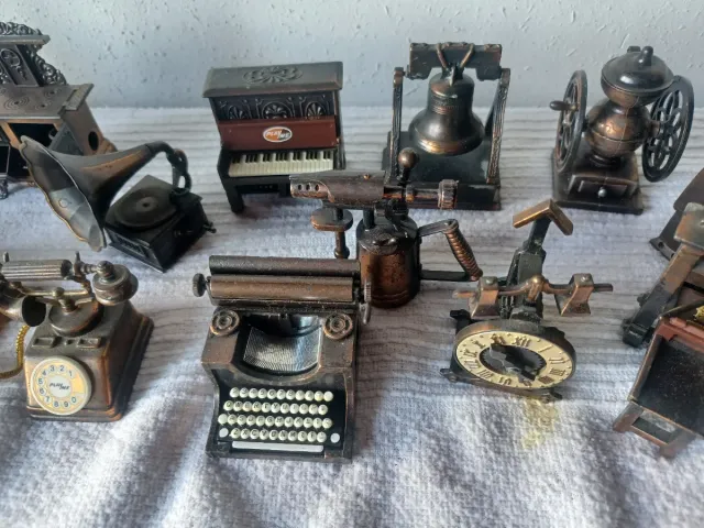 - Incluye gramófono, máquina de escribir, piano, campana, báscula y más.