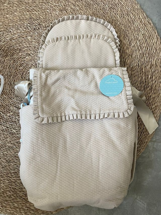 Saco para bebé de la marca Nubeluna en color crudo. Presenta un diseño acolchado con un delicado volante. - Color: Crudo - Marca: Nubeluna - Acabado: Acolchado con volante