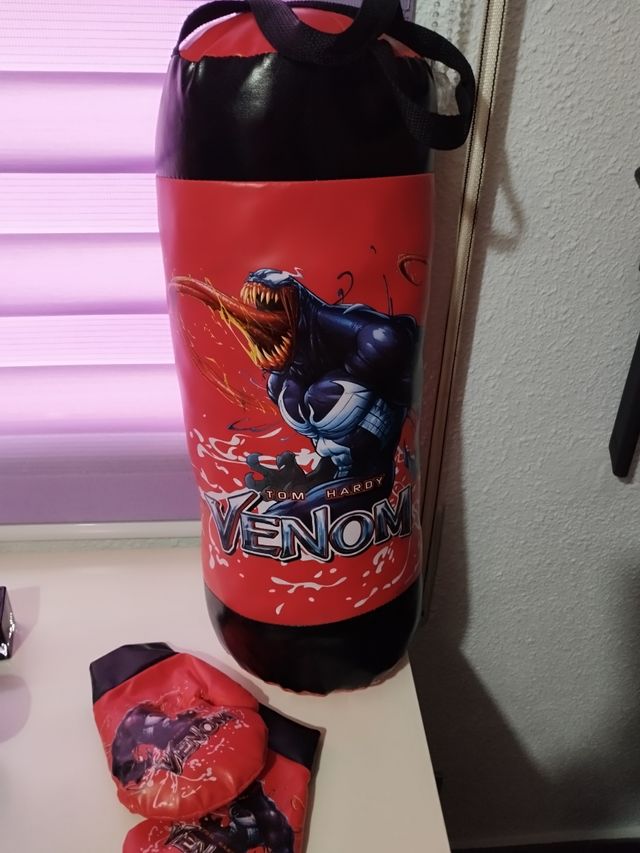 Detalles del productoSaco de boxeo infantil con guantes, ideal para niños. El saco de boxeo está en perfectas condiciones y tiene un diseño de Venom. Incluye un par de guantes a juego. - Saco de boxeo de Venom.