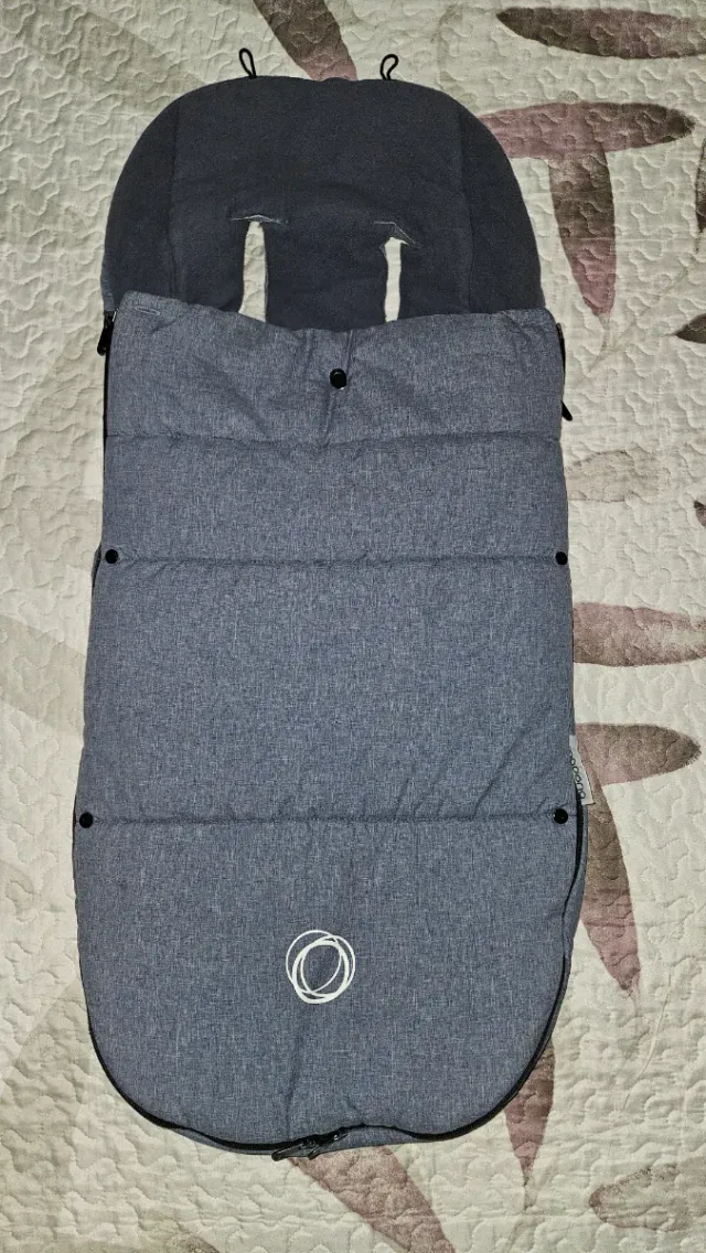 Detalles del productoSaco de invierno para silla de paseo Bugaboo, en color azul jaspeado.