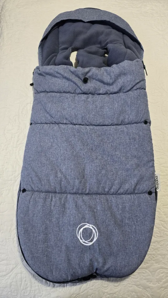 Saco de invierno Bugaboo en color azul, perfecto para mantener abrigado a tu bebé. - Diseño acolchado. - Interior suave y cálido. - Logo de la marca visible.