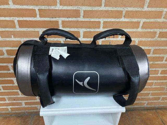 Saco búlgaro de entrenamiento con asas para ejercicios. - Color negro y detalles plateados. - Material resistente. - Diseño cilíndrico.